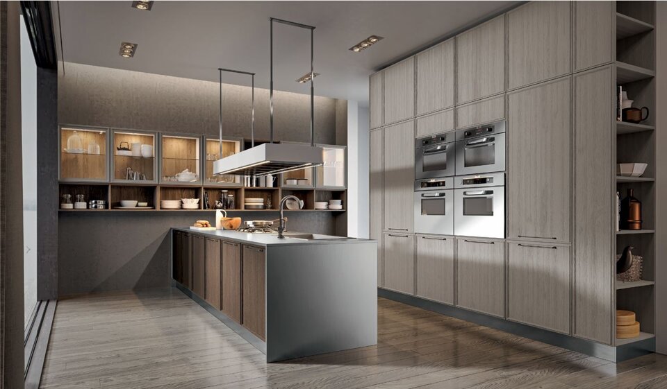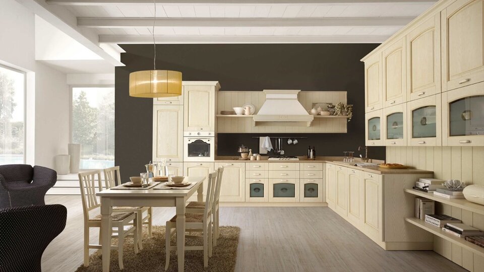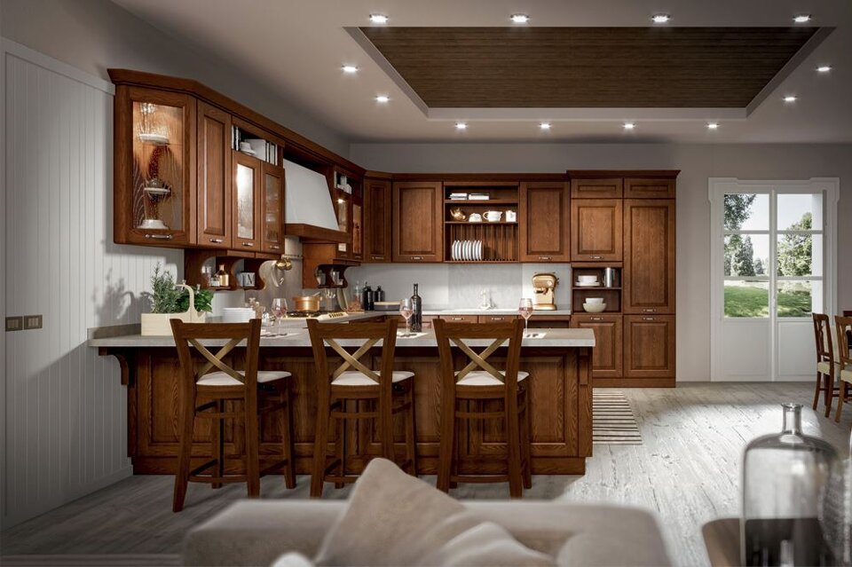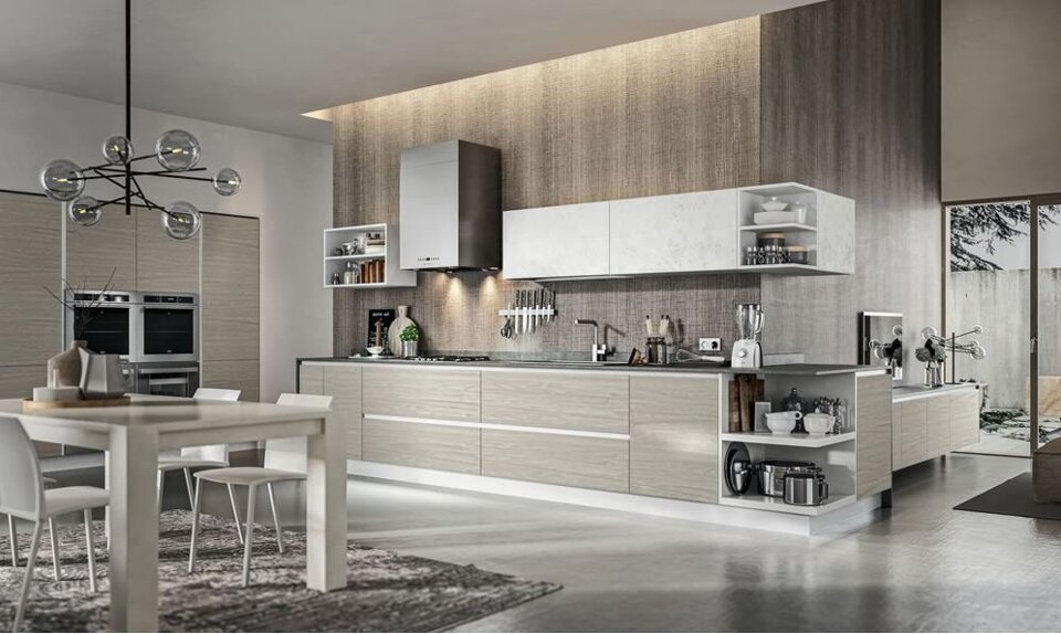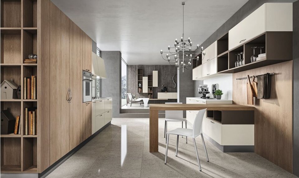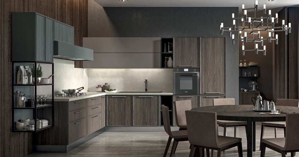 Il legno è un materiale che ha un profondo legame con la tradizione, ma allo stesso tempo risponde alle esigenze estetiche e di sostenibilità contemporanee. Il legno massello trova un impiego limitato nella cucina, in quanto è stato sostituito da elementi con una maggiore stabilità dimensionale e più omogenei: i pannelli impiallacciati, con base di derivazione lignea rivestiti da sottili fogli di legno (con spessori al di sotto del mezzo millimetro), i piallacci. Se si sceglie questo tipo di rivestimento bisogna però considerare anche i punti deboli di questo materiale: l'assorbimento dell'acqua e del vapore nelle giunzioni può essere molto veloce e consistente, e conseguentemente causare dei rigonfiamenti, e inoltre essendo il colore del legno naturale chimicamente instabile, potrebbe modificarsi con il tempo e con la radiazione luminosa.